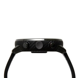 Овој прекрасен смарт часовник има поликарбонатна структура со финиш од јаглеродни влакна (Carbon fiber), покриена со рачно полирана керамичка круна и 2.5D горила стакло. Екранот е капацитивен HD Transflective LCD панел на допир, со големина од 320 x 300 пиксели.