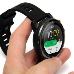 Спортски и елегантен, водоотпорен до 50 метри длабочина, екран 1.34" HD 2.5D, GPS, вграден сензор за срцеви отчукувања, мени на англиски јазик.